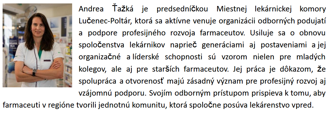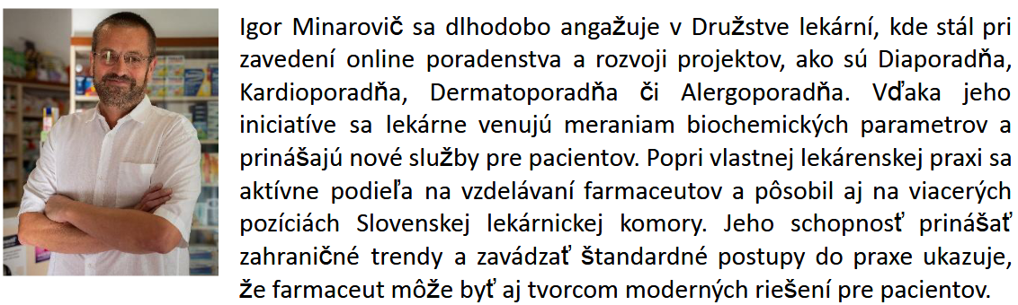 „Naším cieľom je poukázať a vyzdvihnúť nielen odborné vlastnosti konkrétnych farmaceutov, ale zároveň oceniť a spopularizovať ich inšpiratívne príbehy v očiach verejnosti, ktorá je s nimi v každodennom kontakte,“ uviedol Jaroslav Kypr, predseda Asociácie prevádzkovateľov sieťových lekární na Slovensku.