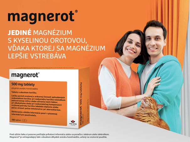 Ak sa rozhodnete siahnuť po doplnkovom magnéziu, zvážte také, ktoré vďaka prirodzenému nosiču zvyšuje jeho efektívne vstrebávanie. Na trhu je viacero magnézií, ktoré si môžeme kúpiť v lekárňach. Jedným z nich je aj Magnerot® od nemeckej spoločnosti Wörwag Pharma. Je to zároveň jediné magnézium s dihydrátom orotátu horečnatého, ako zlúčeniny magnézia a kyseliny orotovej. Nájdete ho v každej dobrej lekárni.